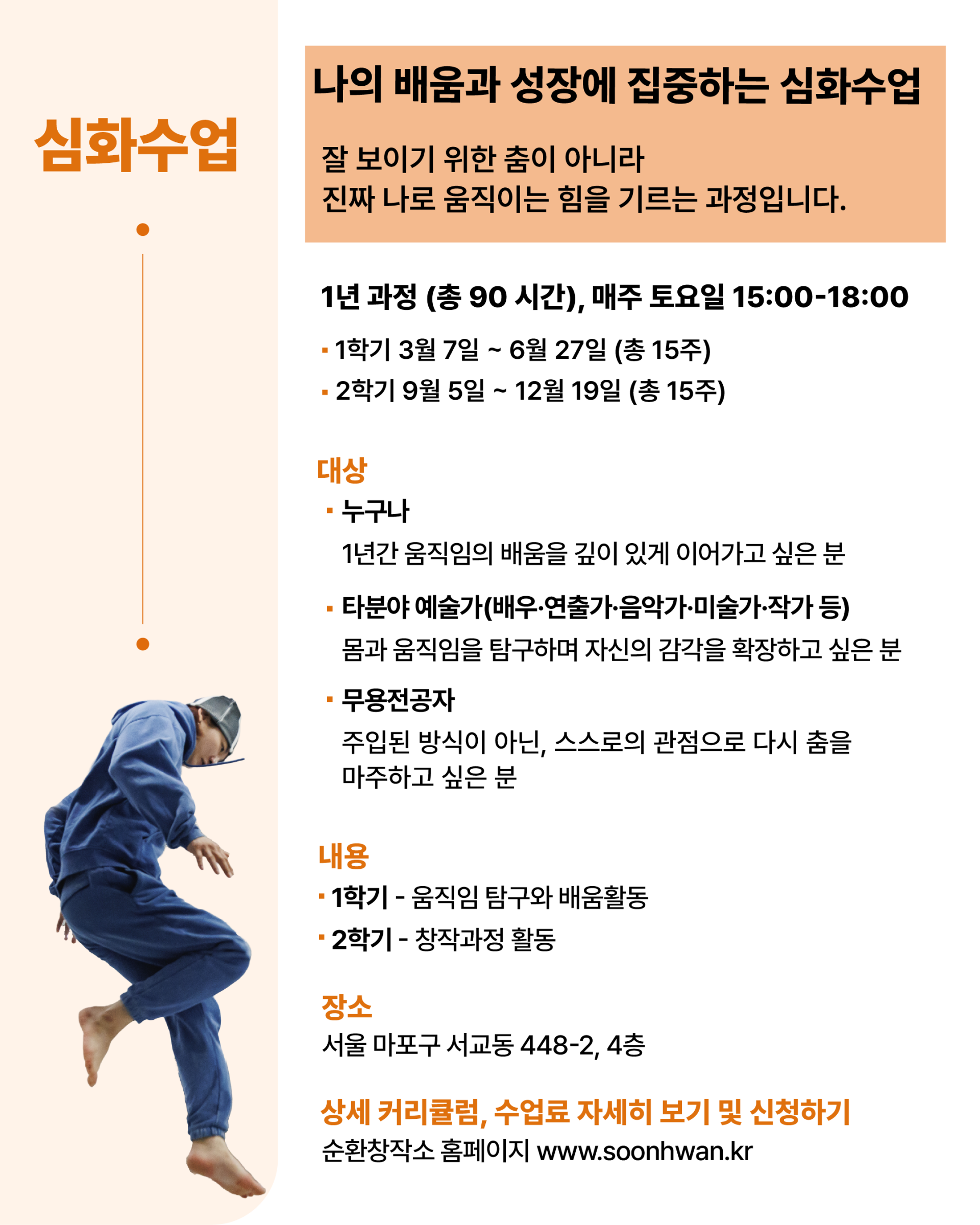 안전하고 깊이 있는 환경 속에서, 1년의 시간동안, 몸을 통해 질문하고 변화하며,